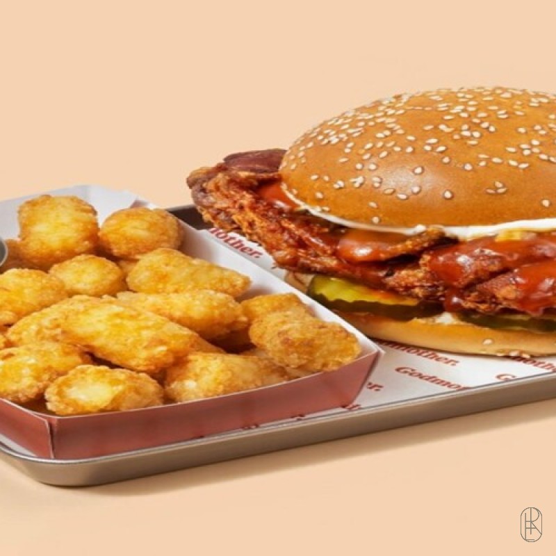 Bánh brioche, Thịt Ức or Đùi Gà Rán, Bacon ,Mayonaise, Sữa Chua, Dưa Muối, Tương ớt, Khoai tây viên chiên, Xốt mù tạt mật ong.
